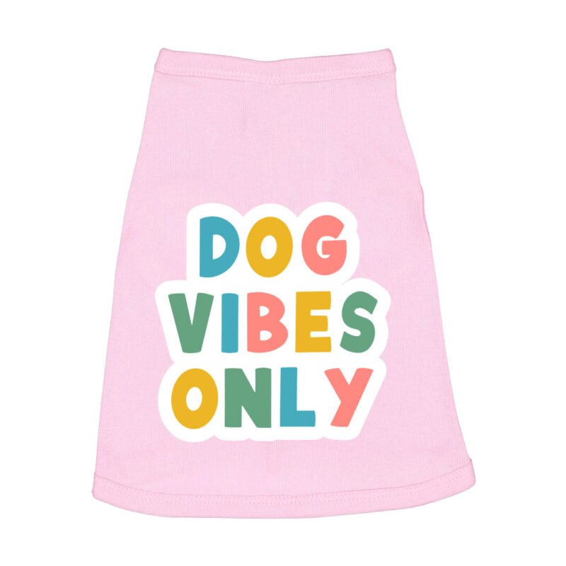 Dog Vibes Only Dog Sleeveless Shirt – Word Art Dog Shirt – Cute Dog Clothing