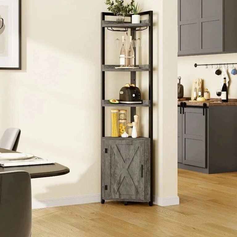 5-Tier Industrial Corner Bookcase with Wine Glass Holder