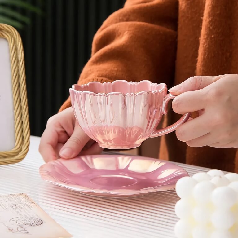 Elegant 240ml Ceramic Petal Cup with Saucer – Coffee, Tea, and Milk Mug