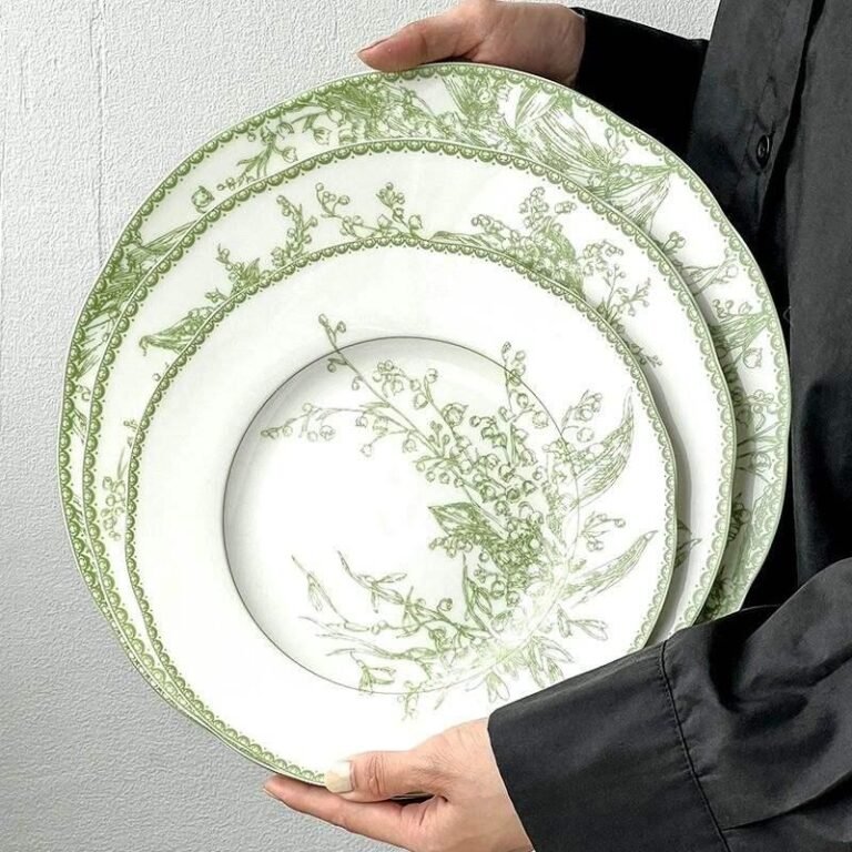 Discover Elegance in Dining Elevate your dining experience with our Elegant Jade Green Lily of the Valley Porcelain Dining Plate.