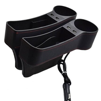 Leather Car Seat Gap Organizer with Dual USB Charging & Cup Holder