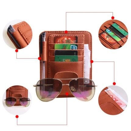 Multi-Functional Leather Car Visor Clip for Sunglasses and Cards