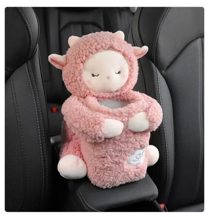 Universal Plush Car Organizer with Integrated Tissue Box and Trash Bin
