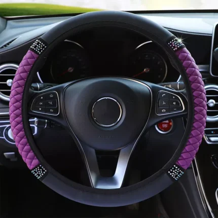 Revitalize and Glamorize Your Drive! Introducing our premium Universal Leather Steering Wheel Cover adorned with dazzling diamond embroidery. Designed to