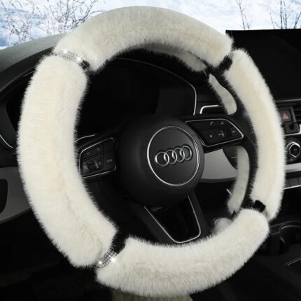 Luxury Anti-Slip Suede Fur Diamond Steering Wheel Cover