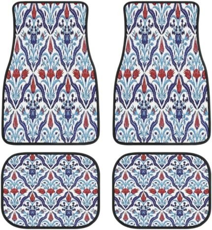 Vintage Persian-Turkish Patterned Car Floor Mats (4-Piece Set)