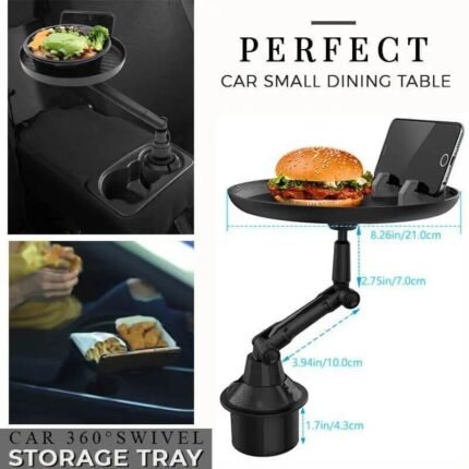 360° Swivel Car Storage Tray with Folding Dining Table & Drink Holder