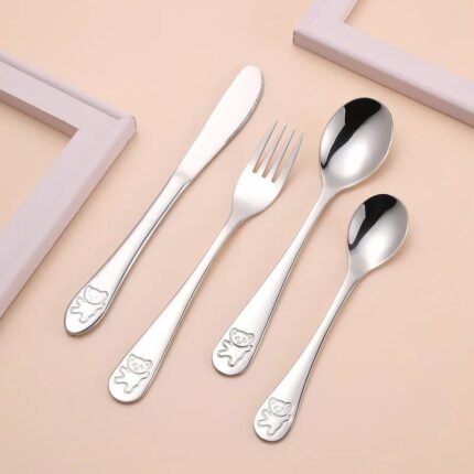 Kids’ Adorable Cartoon Bear Stainless Steel Cutlery Set