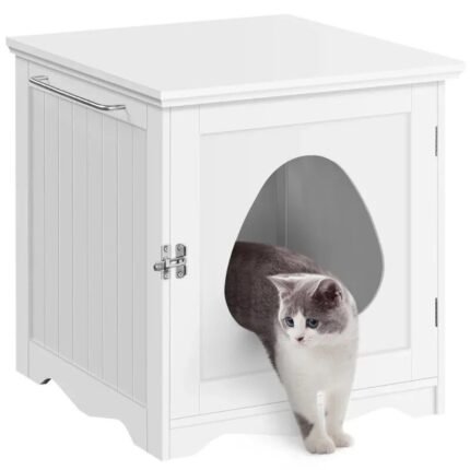 Introducing our latest addition to cat care essentials: the Elegant White Enclosed Cat Litter Box Furniture. Designed to seamlessly blend