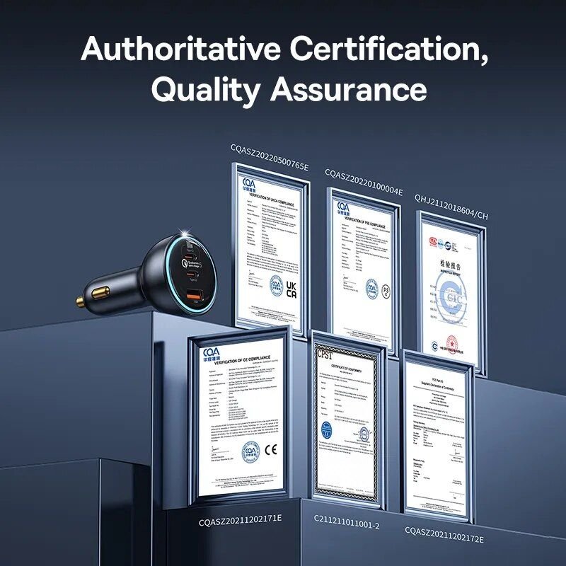 Experience the next-level power of charging with our 160W Multi-Port Fast Charge Car Charger. Whether you’re prepping for an essential business call, gearing up for a road trip, or simply keeping your gadgets ready on a daily commute, this powerhouse ensures you’re always juiced up and ready to go. Boasting state-of-the-art Qualcomm Quick Charge 5.0 technology, this car charger promises to deliver ultra-speedy charging every single time.