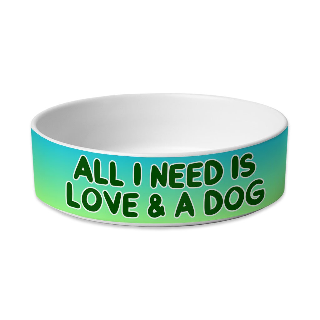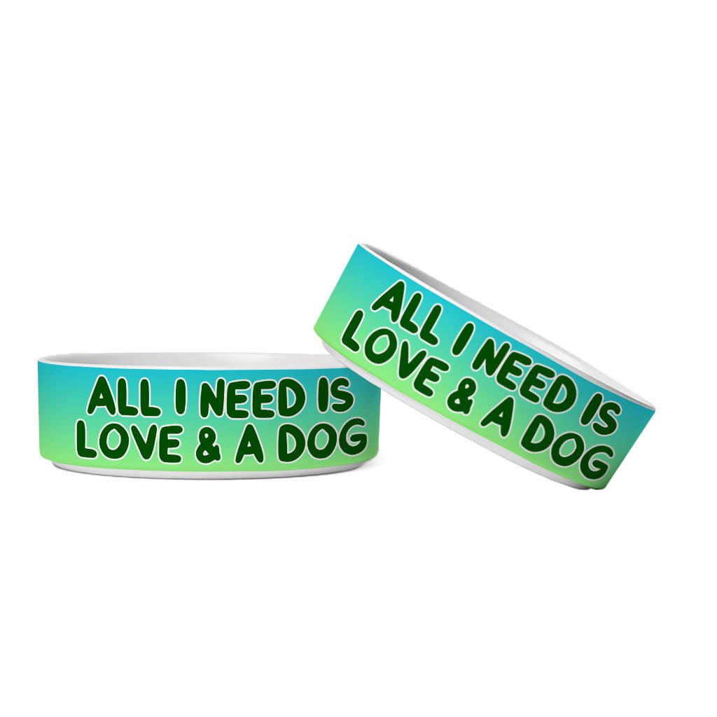 All I Need is Love and a Dog Pet Bowl – Cute Dog Bowl – Graphic Pet Food Bowl