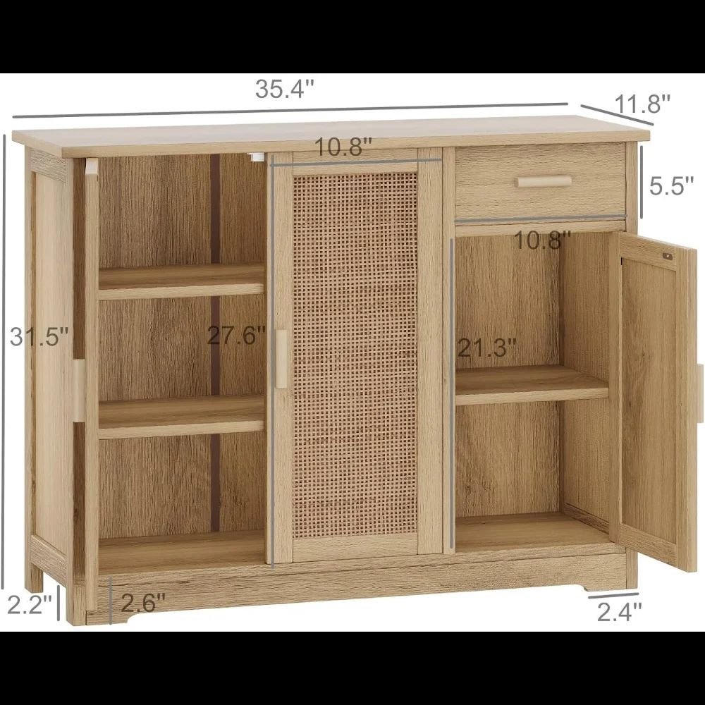 Introducing our beautifully designed multi-functional storage cabinet, a perfect blend of aesthetics and practicality. Meticulously crafted with handwoven rattan doors, this piece exudes a Bohemian charm that easily complements a variety of home decor styles, from modern and traditional to farmhouse and industrial. Its natural appearance and delicate design make it a standout piece in any room.