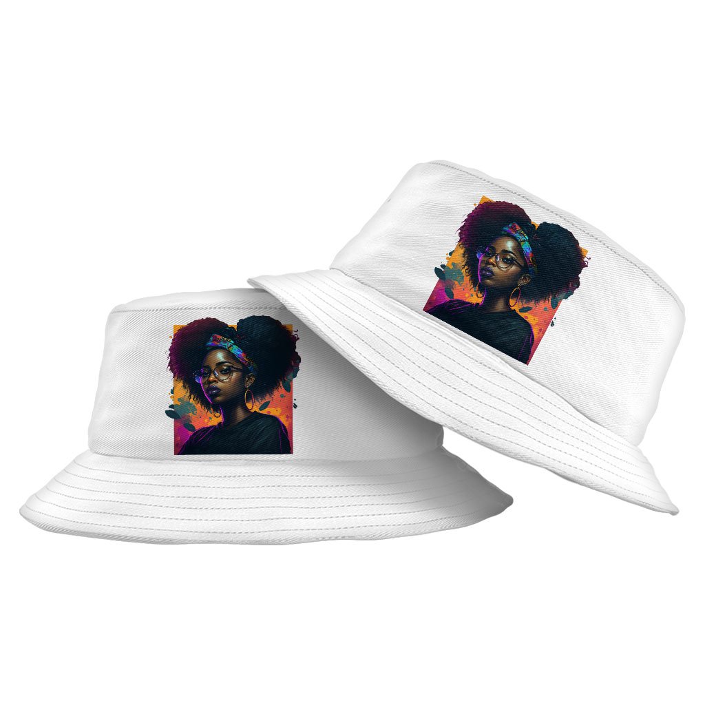 Cartoon Black Girl Art Bucket Hat – Unique Hat – Cute Bucket Hat