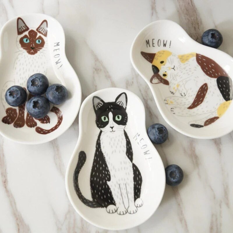 Charming Cartoon Cat Ceramic Snack Plate