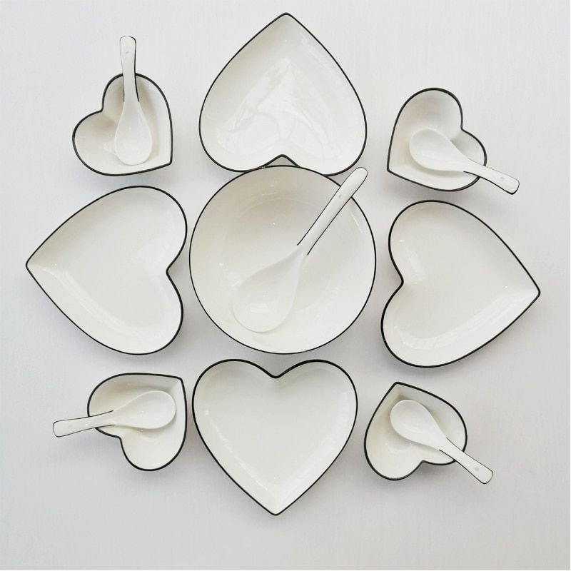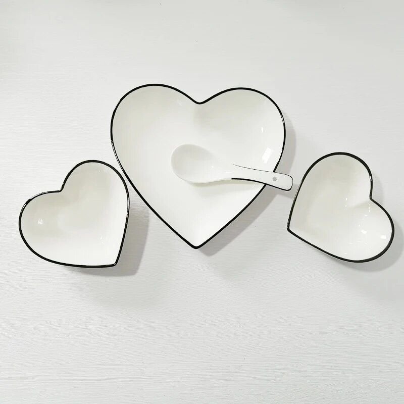 Our heart-shaped ceramic plate is not just a dish; it’s a statement of love and a testament to your fine taste in tableware. Its solid pattern, complemented by a distinctive black line, makes it versatile for any occasion, from casual breakfasts to more formal dinners. The heart shape is not only visually appealing but also symbolizes care and affection, making it perfect for serving dishes to your loved ones.