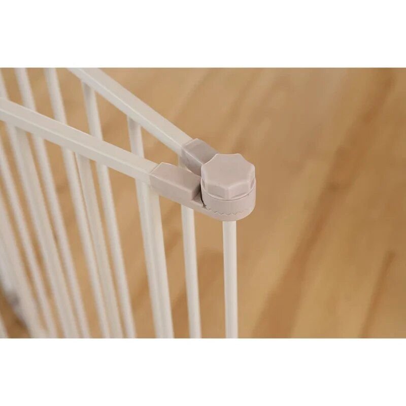 - Easy-to-install wall mount feature. Plus, each wall bracket adds an extra 3 inches to the width, making it span up to 150 inches when used as a gate.
