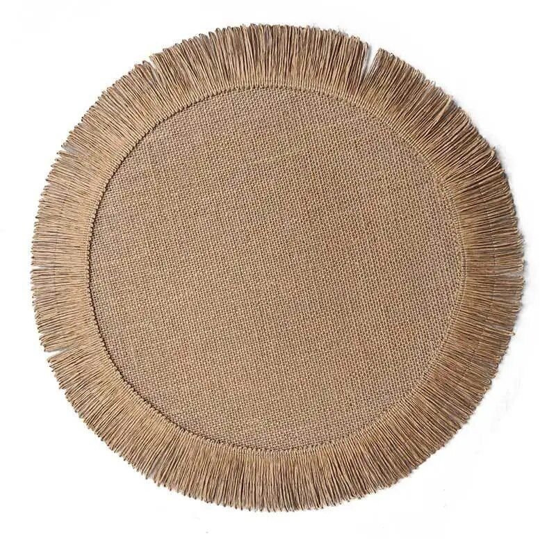 Our placemat stands out with its environmentally friendly materials and stylish fringe design. The 38cm diameter, including a 4.8cm fringe, makes it the perfect size for various table settings. Its heat insulation properties and non-slip texture make it not just beautiful but practical. Enhance your kitchen accessories and table decoration with this unique, American-style linen placemat.