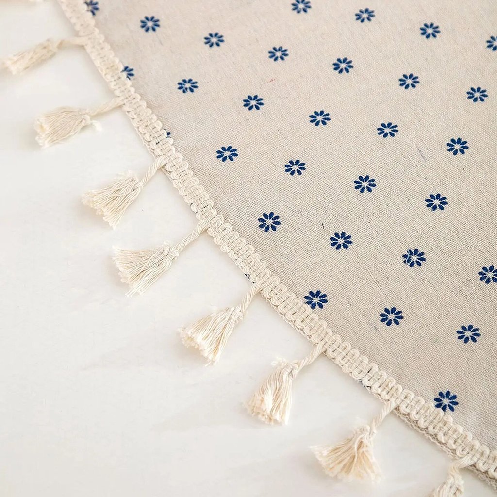 Our tablecloth is expertly crafted from a premium polyester and cotton blend, ensuring durability and ease of maintenance. The exquisite floral pattern, available in a range of colors including blue, brown, red, sky blue, and white, adds a touch of pastoral elegance to your table setting. The woven technique used in its creation lends a luxurious texture that is both visually appealing and pleasant to touch.