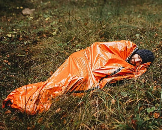 It’s a space blanket. No more no less. I opened it soon as I got it, got in. I’m 6’4″ and 260, it’s long enough to reach the top of my head but not long enough to be pulled over to my face. Packing it back into the sack was pretty easy, one person job. I’ll keep it in my hiking backpack for “that one time” but for planned over night trips I’m bringing a sleeping bag