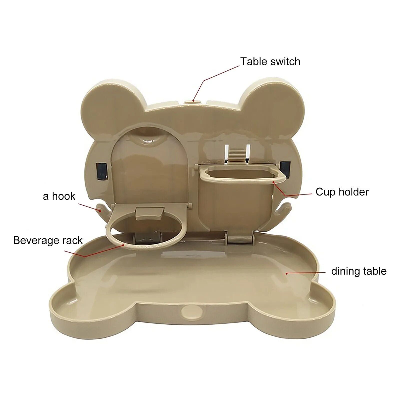 This multifunctional rack is predominantly fixed on the back of the car seat, providing easy access to drinks, snacks, and other essentials. It features a foldable dining table, a drink bottle holder, and additional compartments for small objects such as mobile phones, coins, and pens. The clever design ensures that these items are held securely in place, preventing them from falling off and causing distractions while driving.