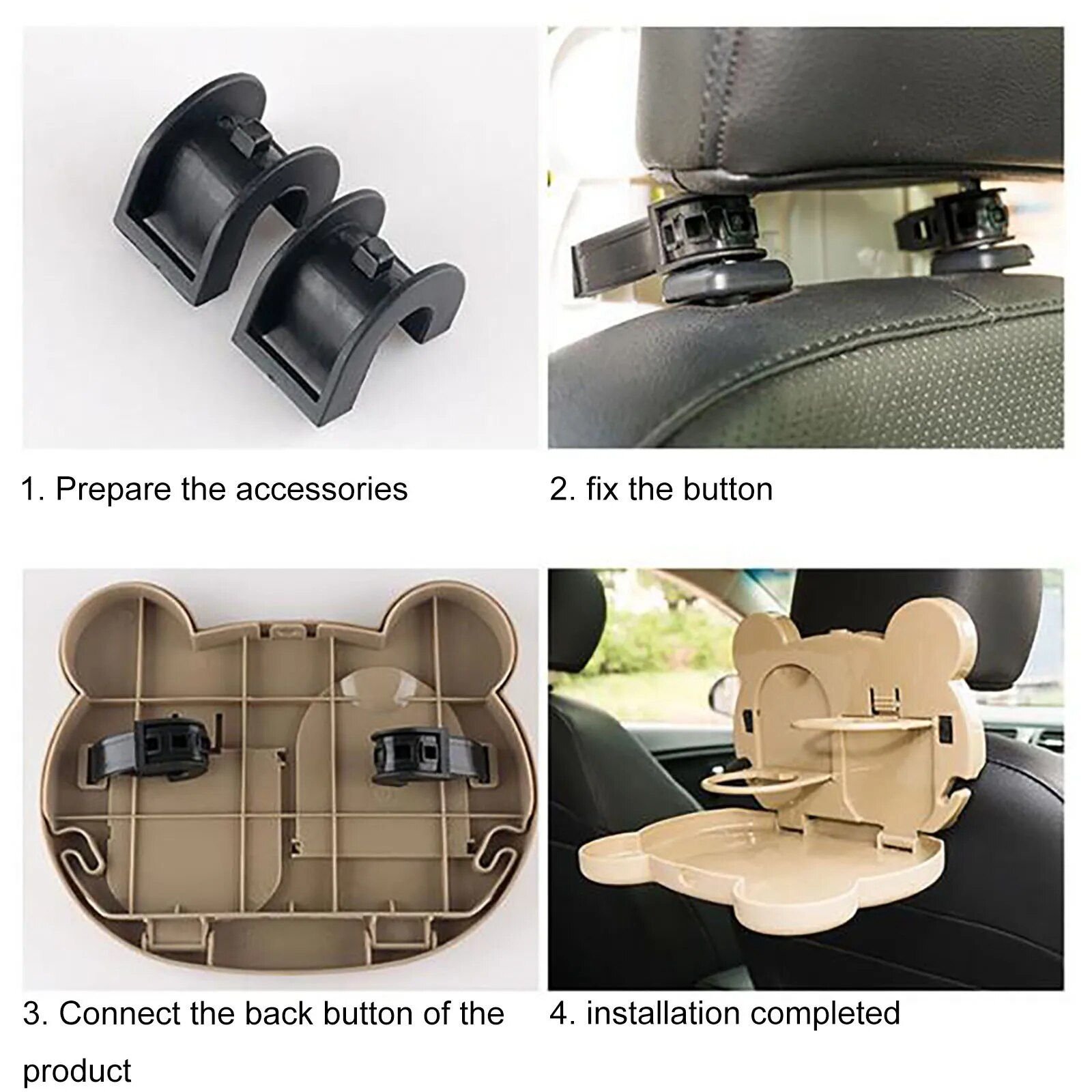 The product is equipped with U-shaped hooks that easily attach to the back of the seat, ensuring a secure and stable fit compatible with 90% of car models on the market. The high-quality rubber buckle, made from environmentally friendly ABS material, guarantees durability and resistance to wear and tear, ensuring a long service life.