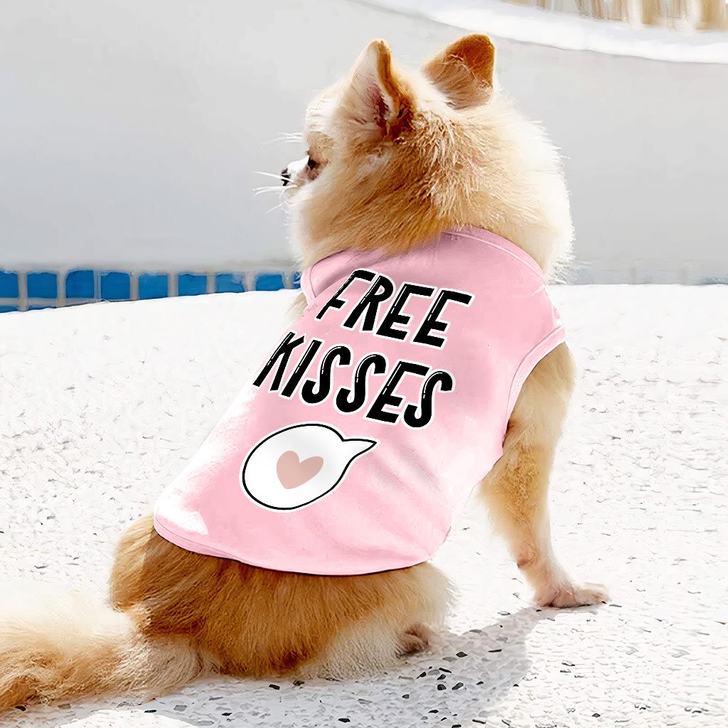 Free Kisses Dog Sleeveless Shirt – Word Print Dog Shirt – Minimalist Dog Clothing