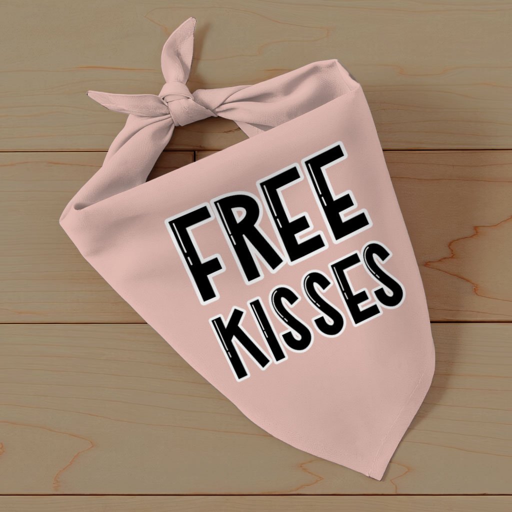 Free Kisses Pet Bandana – Word Print Dog Bandana – Minimalist Pet Scarf