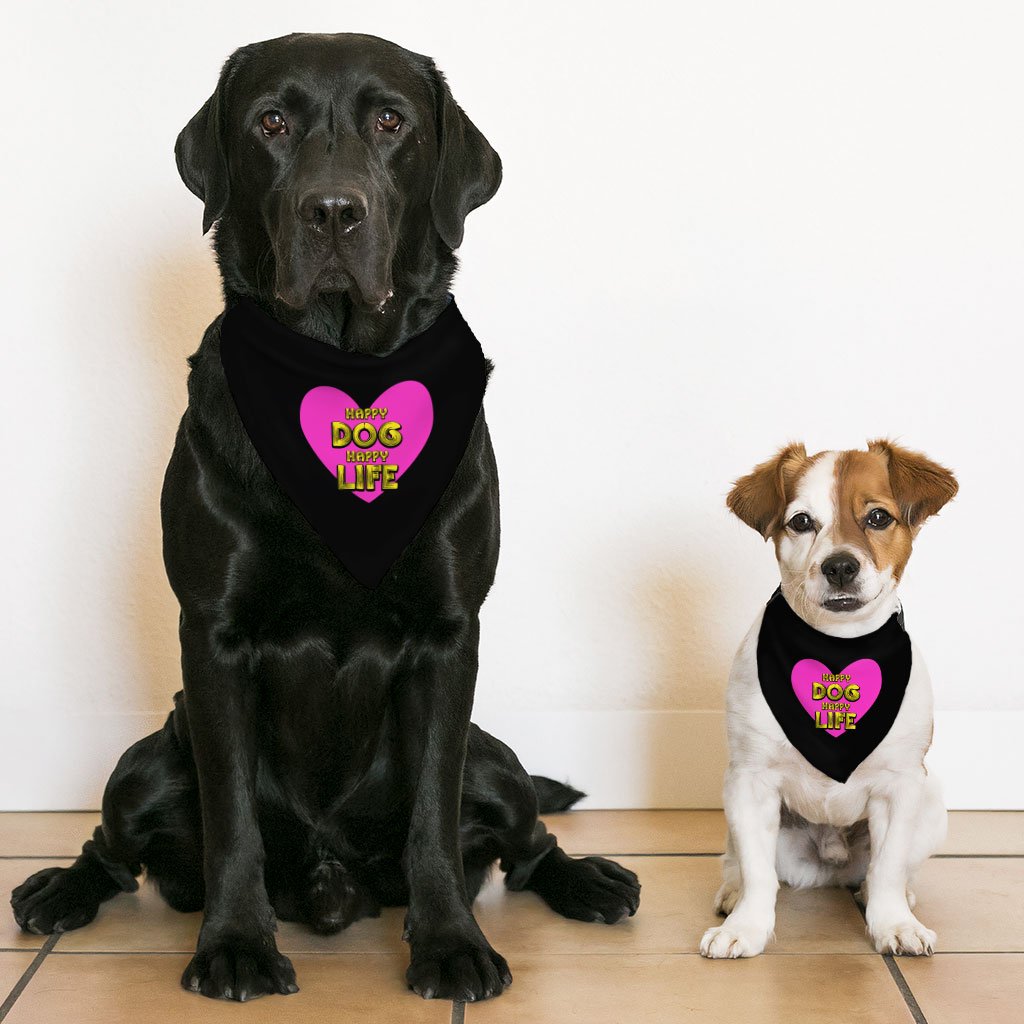 Happy Dog Happy Life Pet Bandana Collar – Phrase Scarf Collar – Art Print Dog Bandana