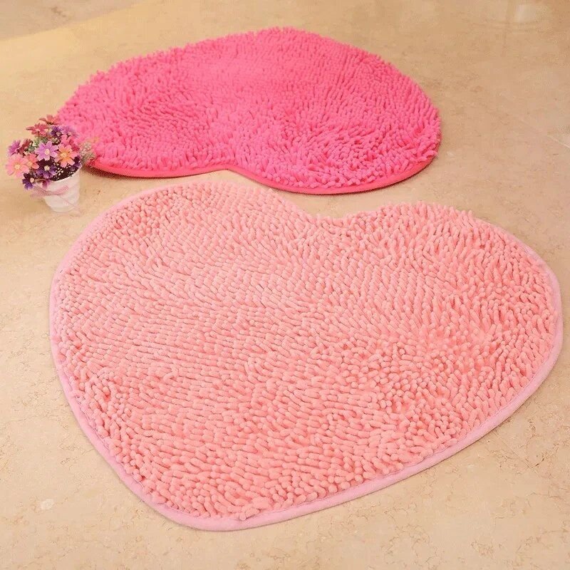 Heart-Shaped Chenille Floor Mat