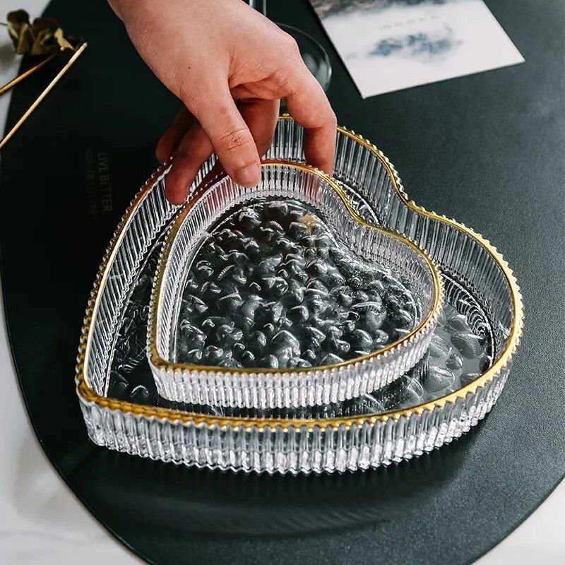 Ready to add a touch of elegance to your home? Our heart-shaped glass plate with a gold rim is more than just a dish; it’s a versatile piece that complements any occasion. Whether you’re looking to impress guests, organize your treasures, or simply enjoy a touch of beauty in your daily life, this plate is the perfect choice. Order now and let elegance unfold in the heart of your home.
