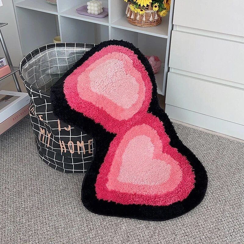 Introducing our Heart-Shaped Tufted Rug, the perfect addition to any room seeking a blend of comfort, style, and functionality. Crafted with meticulous attention to detail, this black and pink carpet embodies the essence of modern aesthetic home decor. Its unique heart shape adds a cool, loving touch to your living room, bedroom, or any space that could use a splash of warmth and color.