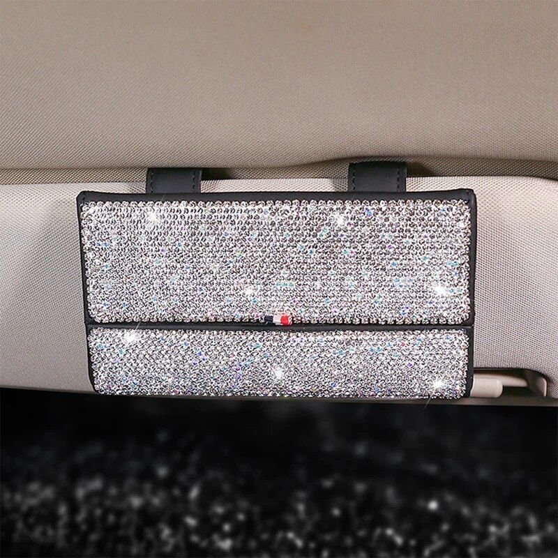 Enhance your driving experience and inject a touch of glamour into your car interior with our Luxurious Crystal Rhinestone Suede Leather Car Glasses Case. Designed for the fashion-savvy and practical driver, this case ensures your sunglasses stay protected and within reach. It’s not just an accessory; it’s a statement piece that blends functionality with style. Whether it’s a sunny day or a long drive at night, having your glasses at hand is now as easy as it is stylish.