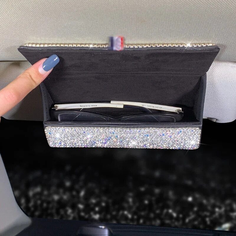 It’s time to make your car as chic and organized as your life. Choose our Luxurious Crystal Rhinestone Car Glasses Holder and enjoy the peace of mind that comes with knowing your eyewear is secure, accessible, and encased in elegance. From its universal fit to the sparkling personal touch it adds, this glasses case is an indispensable accessory for anyone who appreciates luxury and efficiency.
