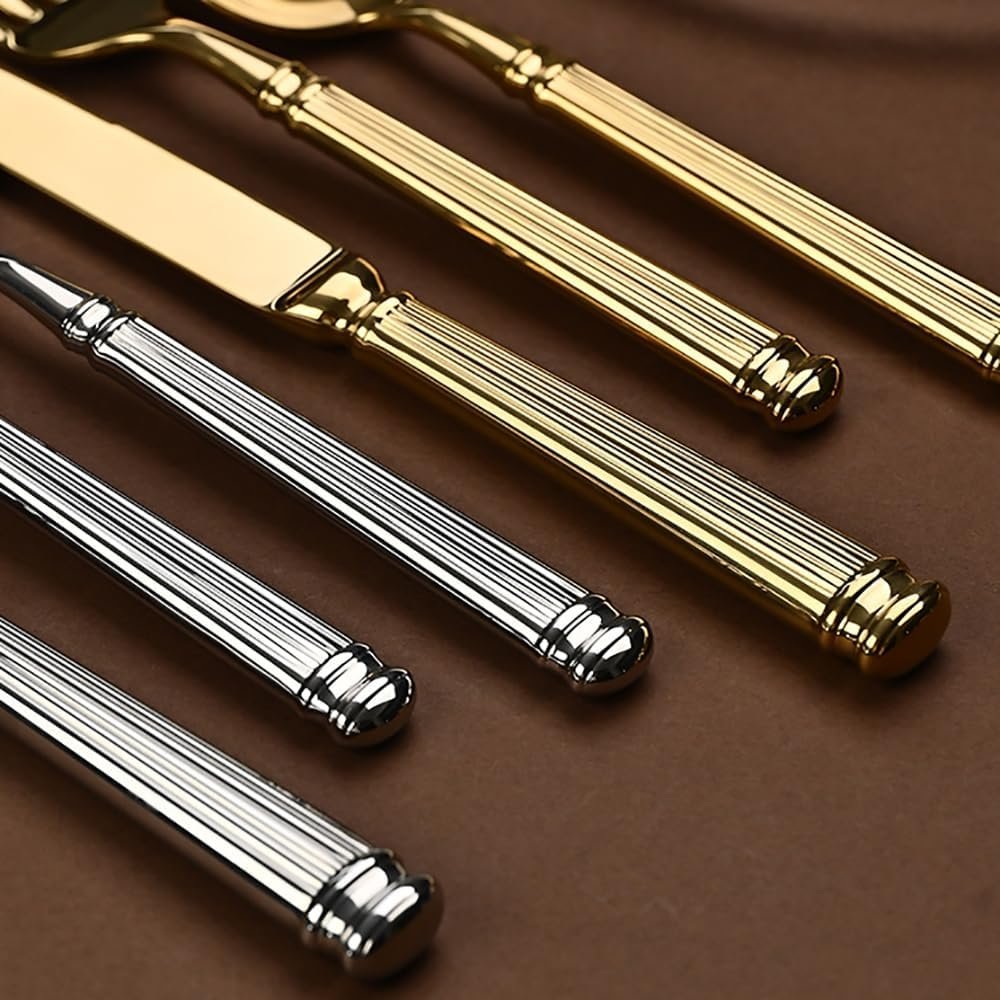 Each piece in this exquisite set boasts a brilliant shine and a substantial feel in the hand – a testament to its superior quality. Made from premium 304 stainless steel, the cutlery is not only visually appealing but also durable and rust-proof, ensuring long-lasting beauty and functionality.