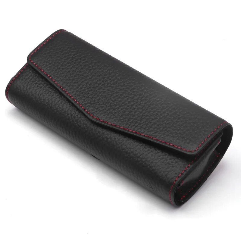 Luxury Cowhide Leather Sunglasses Case for Car Visor