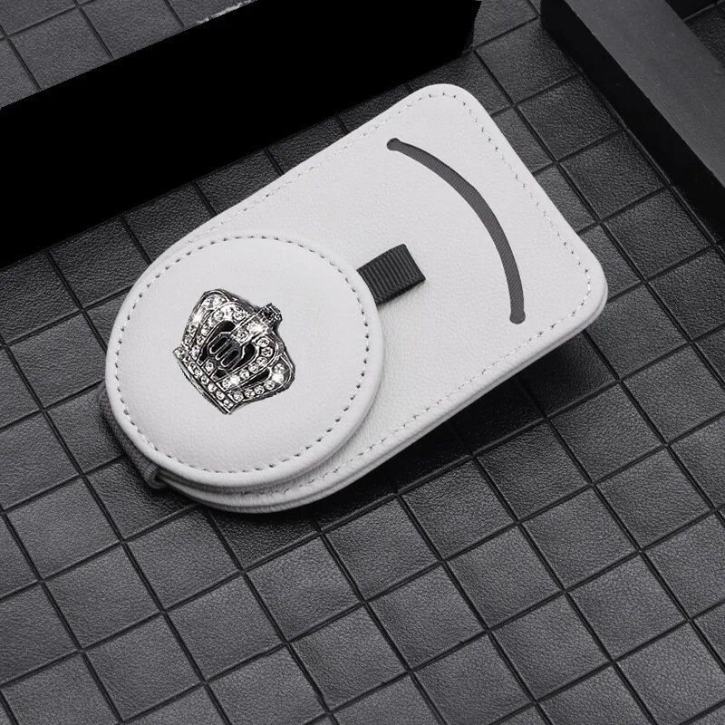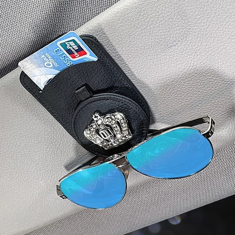 Luxury Leather Car Visor Sunglass and Card Holder with Diamond Crown