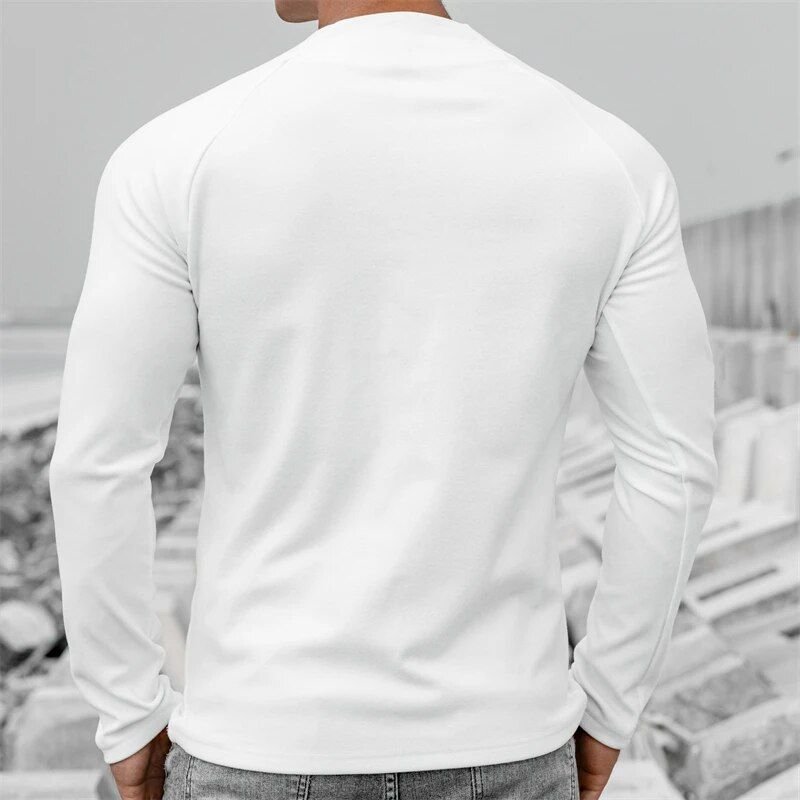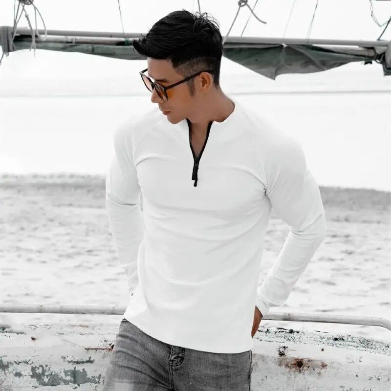 Men’s Long Sleeve Slim Fit Sports T-Shirt with Zipper Neckline