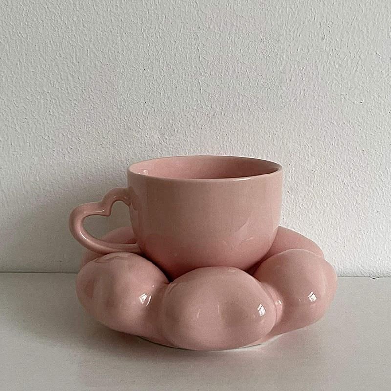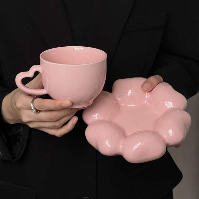Pink Heart Ceramic Coffee Mug with Saucer