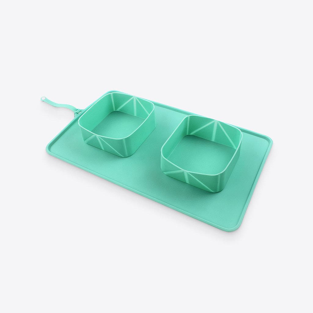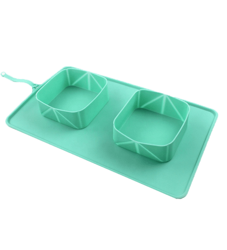 Shape: square. Material: silicone (bowl), oxford cloth (package bag). Size: 39*24*4.7 cm. Color: green. Comes with an oxford cloth package bag of the same color. Made of eco-friendly non-toxic materials, lead-free.