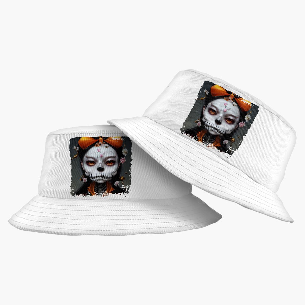 Skull Print Bucket Hat – Novelty Skeleton Hat – Creepy Girl Bucket Hat