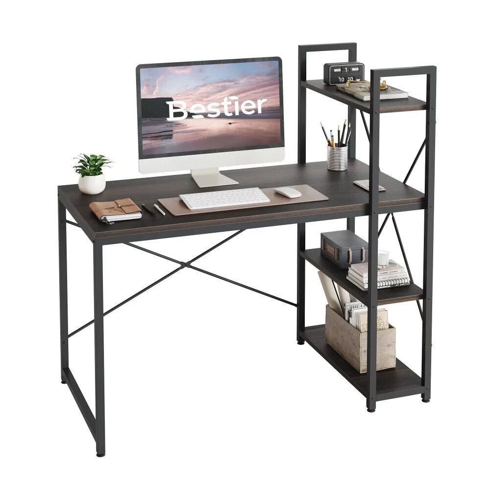 Space-Saving Home Office Writing Desk with Shelves & Sturdy Metal Frame