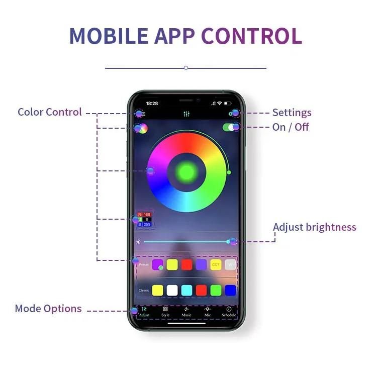 • Convenient control through an RF remote controller and Bluetooth app, including sound activation.