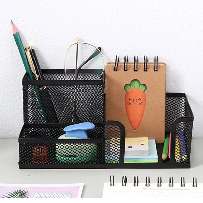Our Stylish 3-Compartment Metal Pen Holder & Desk Organizer stands out with its unique combination of elegance and practicality. The robust metal construction guarantees durability, while the minimalist mesh design adds a modern touch to your workspace. This multifunctional organizer is not just a storage solution but a statement piece that reflects your style and helps maintain a neat and efficient working environment. Ideal for any desk, it’s the perfect way to keep your stationery essentials organized and within easy reach.
