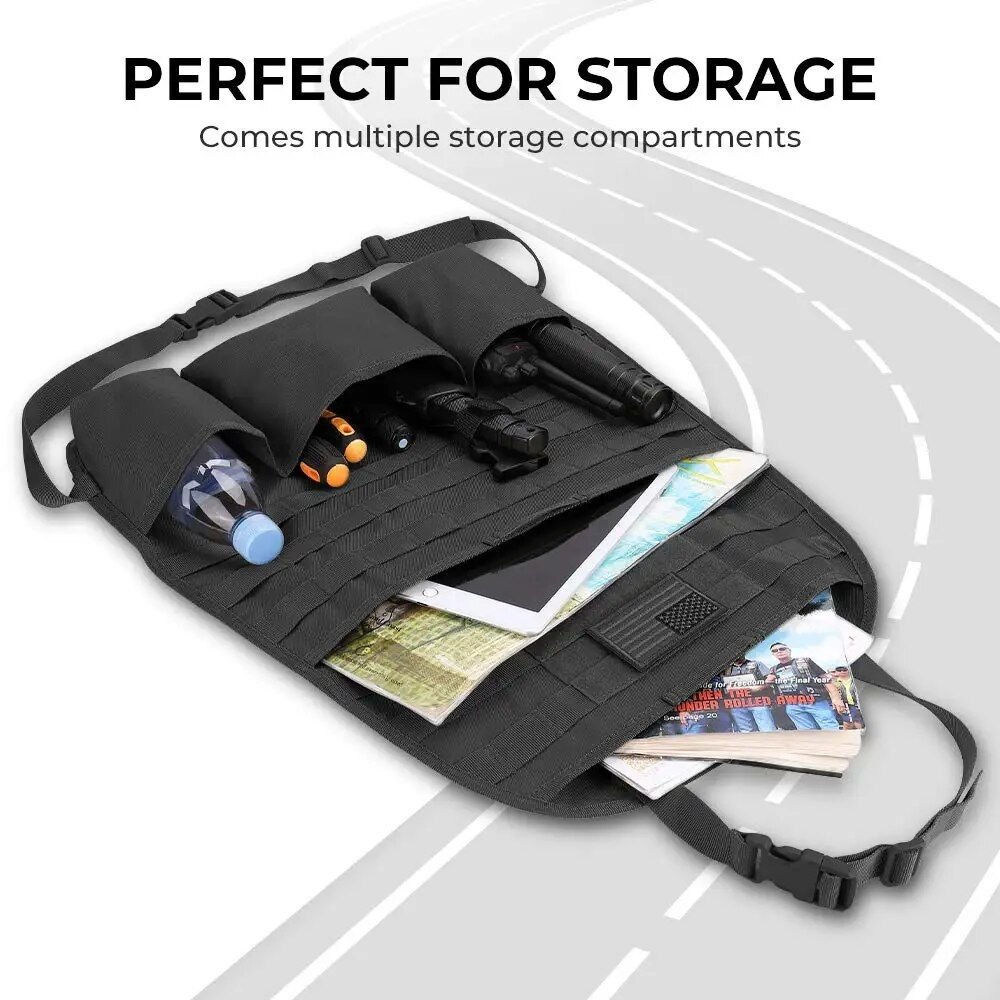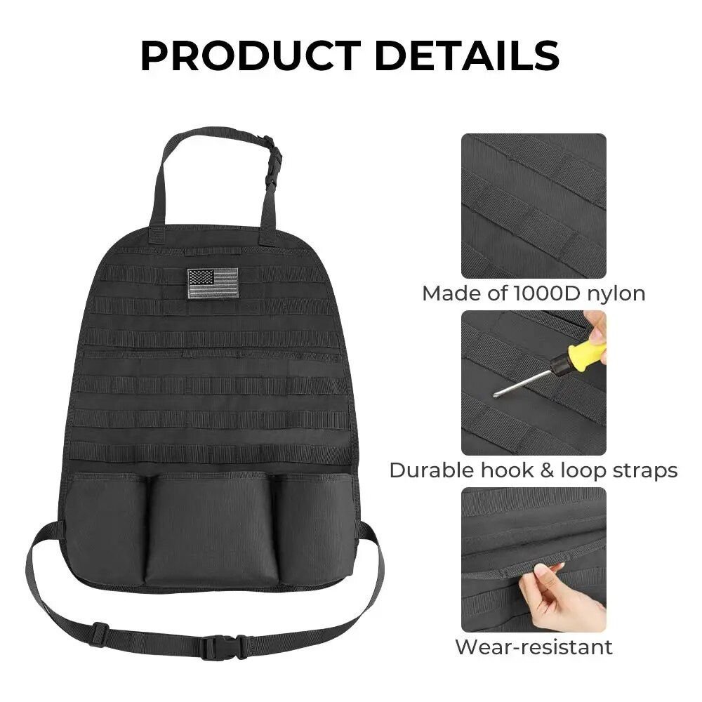Transform your vehicle into a hub of organization and accessibility with our Universal Tactical Car Seat Back Organizer. Crafted for the adventurer, the everyday commuter, and the organizational enthusiast, this robust organizer is your solution to keeping essential items within reach without sacrificing the pristine condition of your vehicle’s interior. Designed with the ruggedness of 1000D nylon, it offers unrivaled durability and water resistance, ensuring your gear stays dry and secure, no matter where the road takes you.