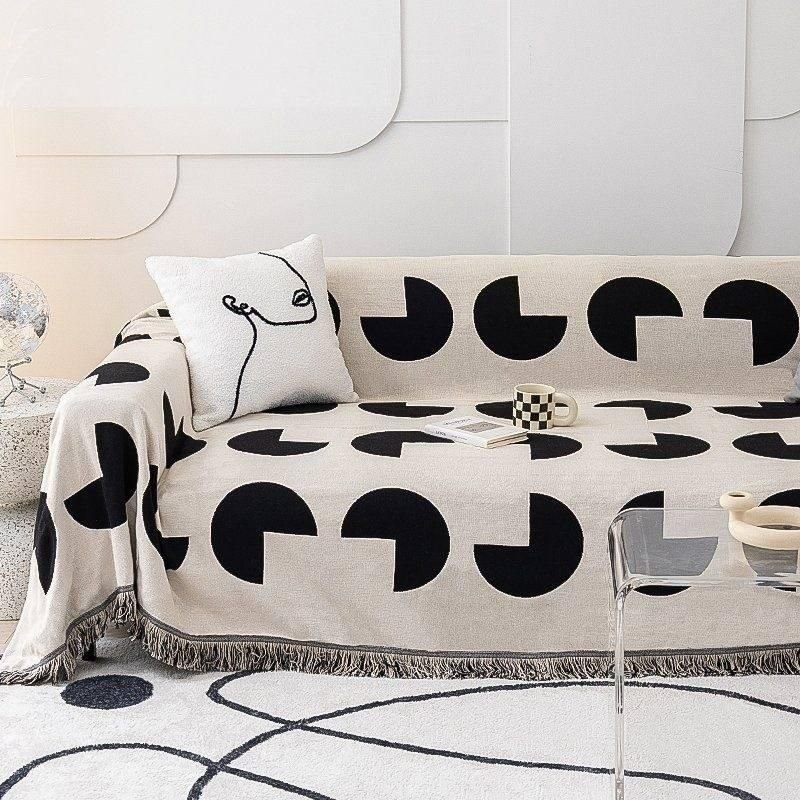Introducing our Irregular Circle Throw Blanket, a perfect blend of functionality and style for your home and outdoor adventures. Its unique geometric pattern and classic vintage charm make it an essential item for those who value both aesthetics and practicality. Whether draped over your sofa, laid out for a picnic, or snuggling up on a cool evening, this throw blanket adds a touch of sophistication to any setting.