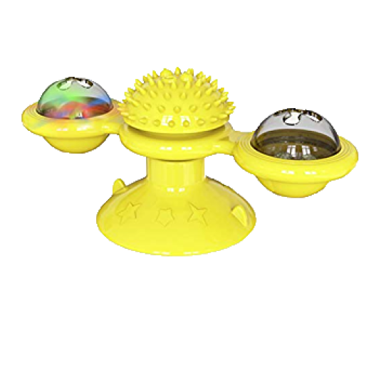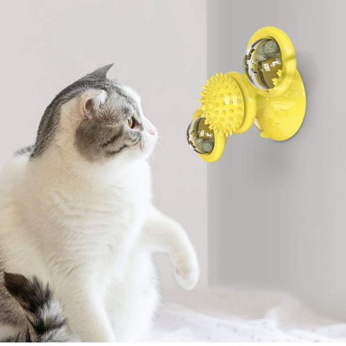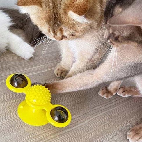 My cat just loves this toy! We have it on the window by our bathtub and she’s always running to spin the toy. She even rubs her head on the center to itch her head which she never does with other cat toys. I love the little blinking ball that goes inside one of the sides of the spinners. My cat will watch the lights blink and go back to spin the toy so they will blink again. Definitely keeps her interest and worth every penny! Highly recommend!