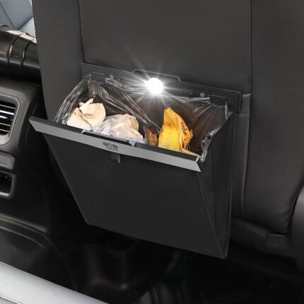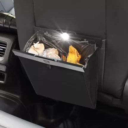 Waterproof Magnetic Car Trash Bag with LED & Leather Storage