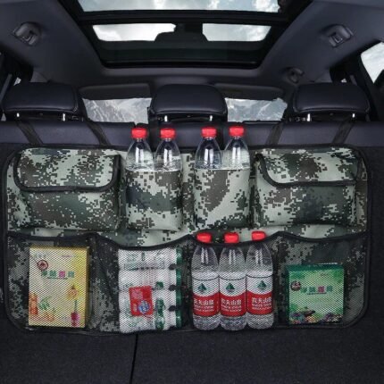 Waterproof Oxford Car Seat Organizer – Camouflage Grey Backseat Storage Bag